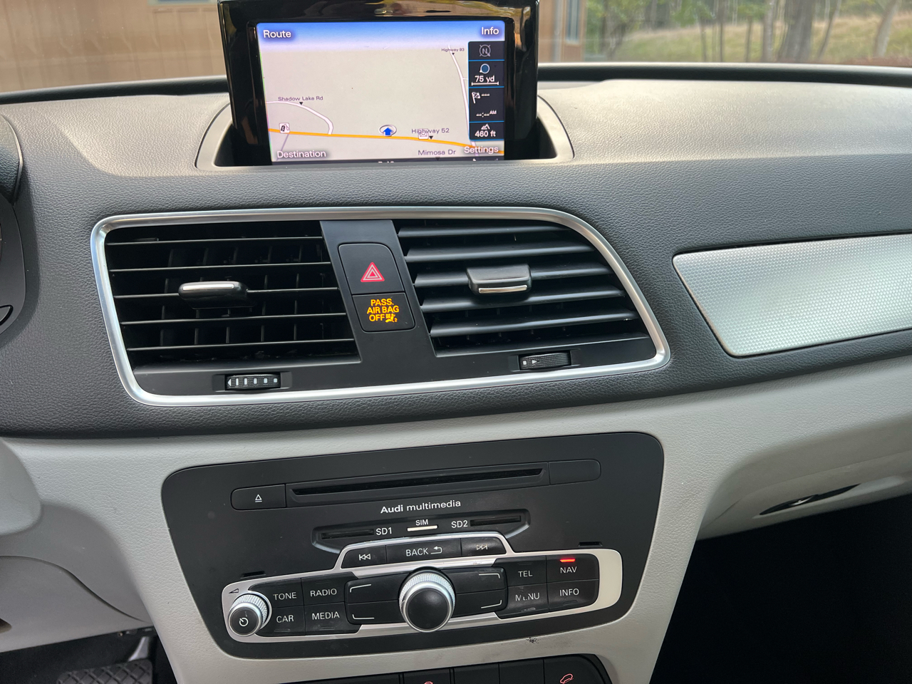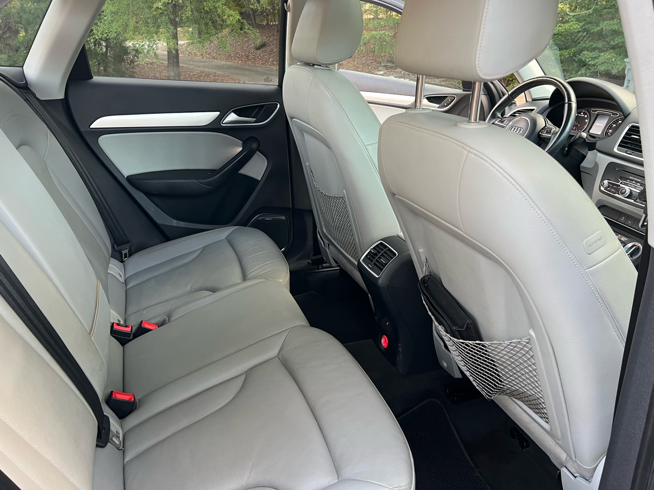 Get behind the wheel of this sleek and stylish 2015 Audi Q3! This luxurious SUV is perfect for families with its top-notch safety features like child safety door locks and multiple airbags. With traction control and electronic stability control, you'll feel confident on any road trip. The leather seats and leather-wrapped steering wheel add a touch of elegance to the spacious interior. And don't worry about getting lost, the navigation aid will guide you on all your adventures. Whether you're cruising down the highway or navigating through city streets, the Audi Q3 will make every drive a pleasure. The power sunroof is perfect for enjoying sunny days, while the rear spoiler adds a sporty touch to the exterior. Plus, with alloy wheels and high intensity discharge headlights, you'll turn heads wherever you go. And the best part? A Carfax report is available for this vehicle, so you can shop with confidence knowing its history. Don't miss out on this fantastic Audi Q3 - come take it for a test drive today!